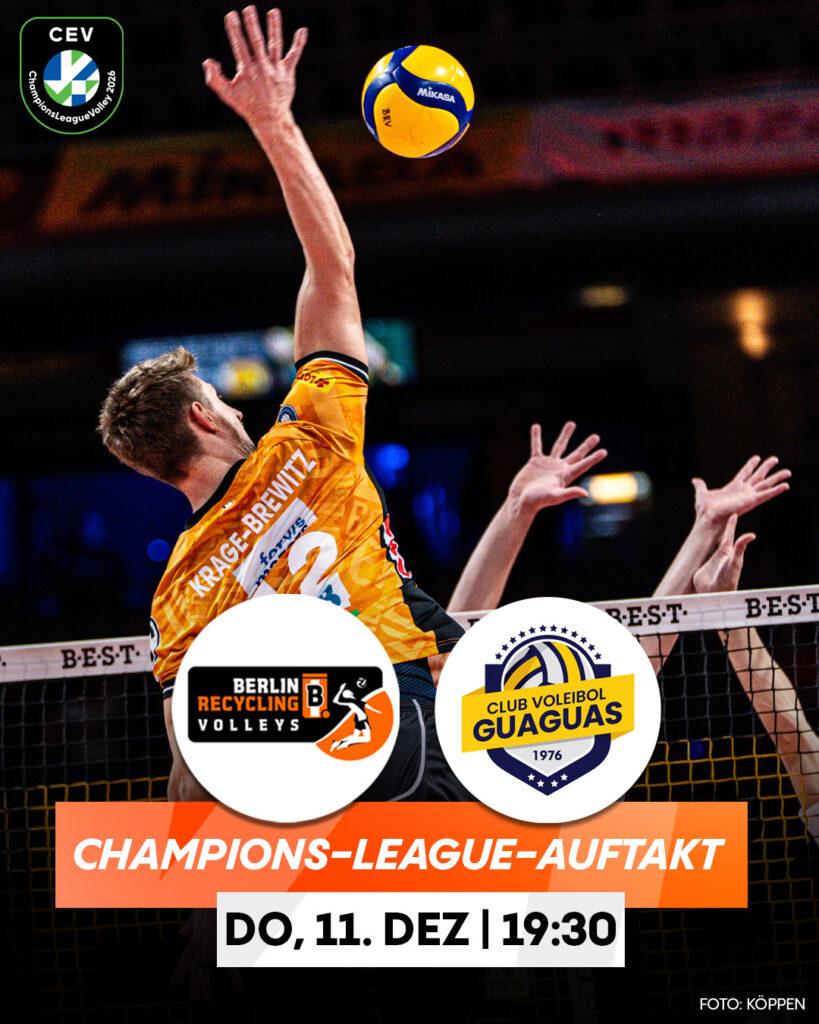 In der kommenden Woche startet die Berliner Mannschaft in die Champions League Spielzeit 25/26. Gegner in der Max-Schmeling-Halle ist mit dem Spanischen Meister Guagas Las Palmas ein europäisches Spitzenteam, in dessen Kader solche Weltstars wie der dreifache Champions-League-Sieger Osmany Juantorena stehen.